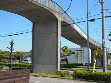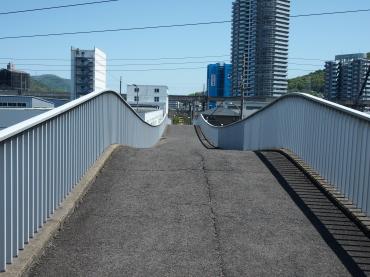 竣工1991年の「宇多津横断歩道橋」 日本で唯一の三径間連続吊床版橋。 当時、瀬戸大橋など瀬戸内海に面した佳景への調和を望まれていた背景から 薄く滑らかな曲線による、柔らかくスレンダーな外観のデザインになったようです。 また耐震や強度も十分に考慮されており、当時宇多津のランドマーク的位置づけであったようです。